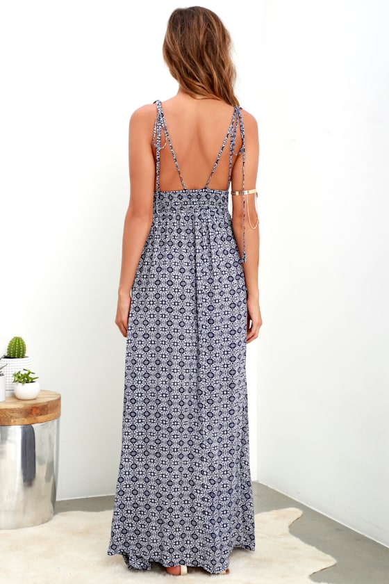 Pretty Navy Blue Dress - Print Dress - Maxi Dress - $64.00 - Lulus