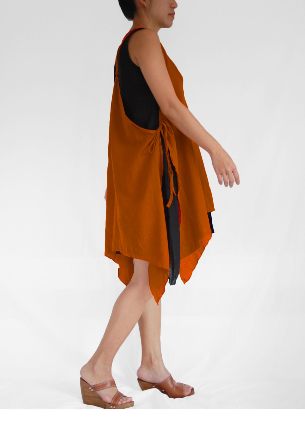 Burnt Orange Cotton Dress Women Knee Length Dress Soft Cotton Lagenlook Dress Casual Summer