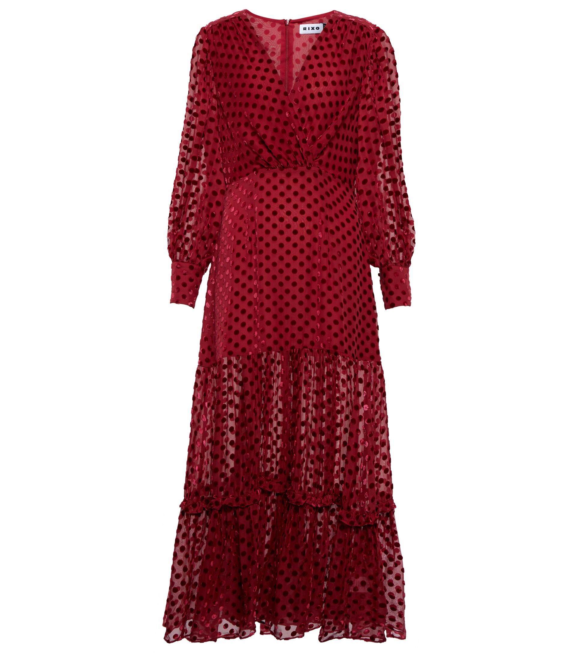 RIXO Juliette Polka-Dot Midi Dress | endource