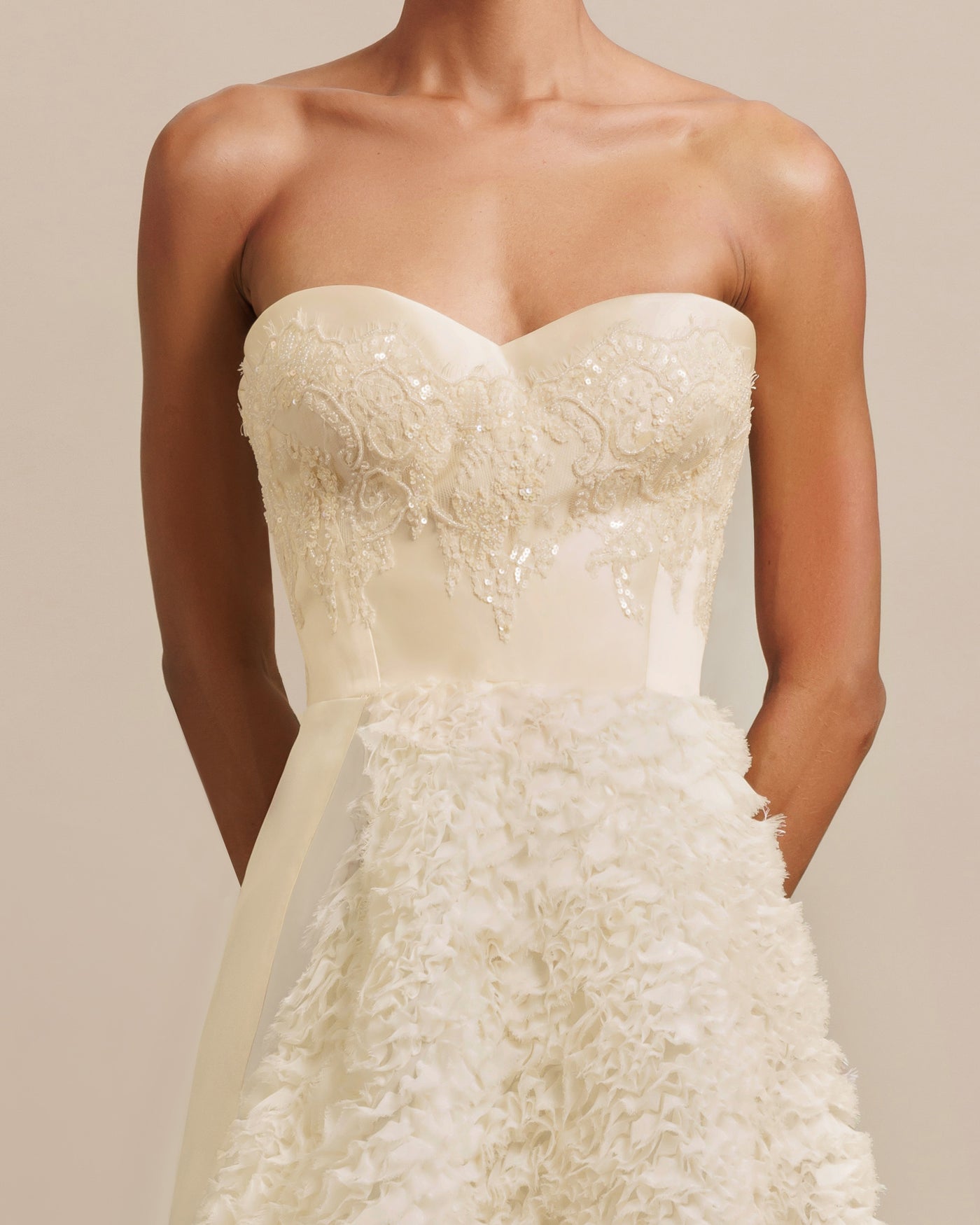 242C3061 Ivory Sequin Tulle Strapless cocktail Dress