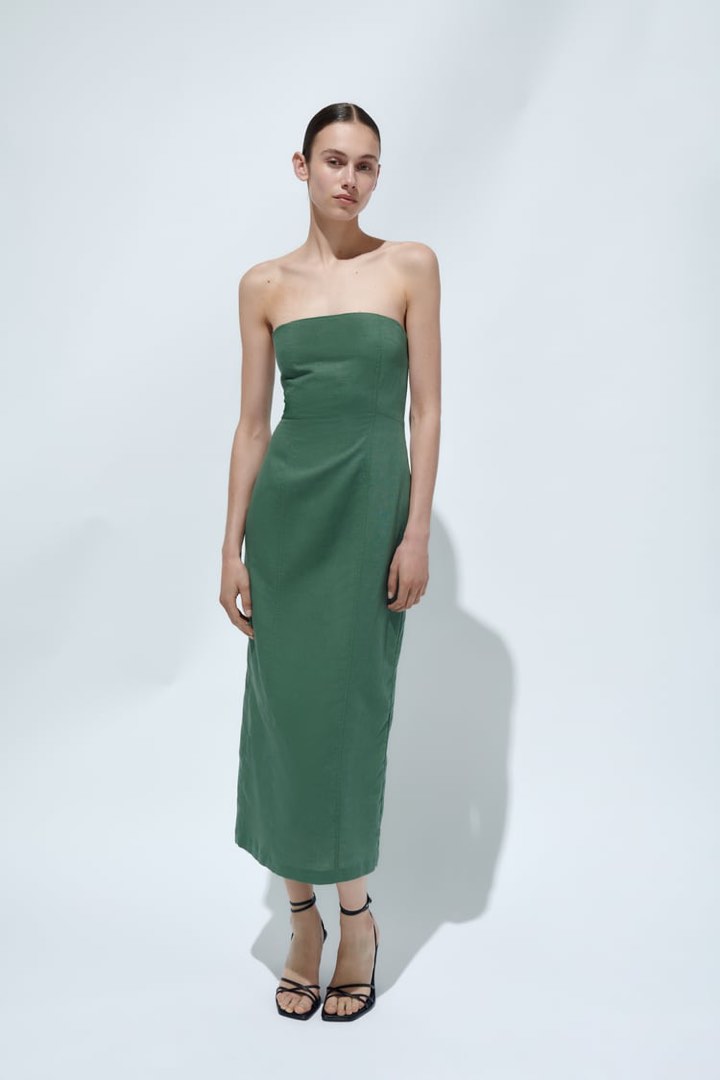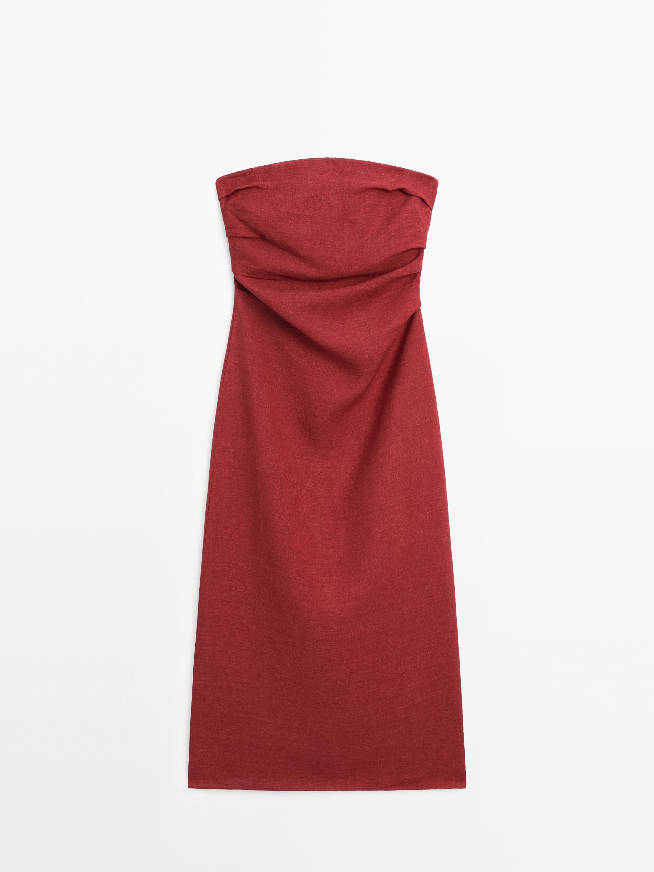 Strapless linen dress · Brown · Smart / Dresses And Jumpsuits | Massimo Dutti