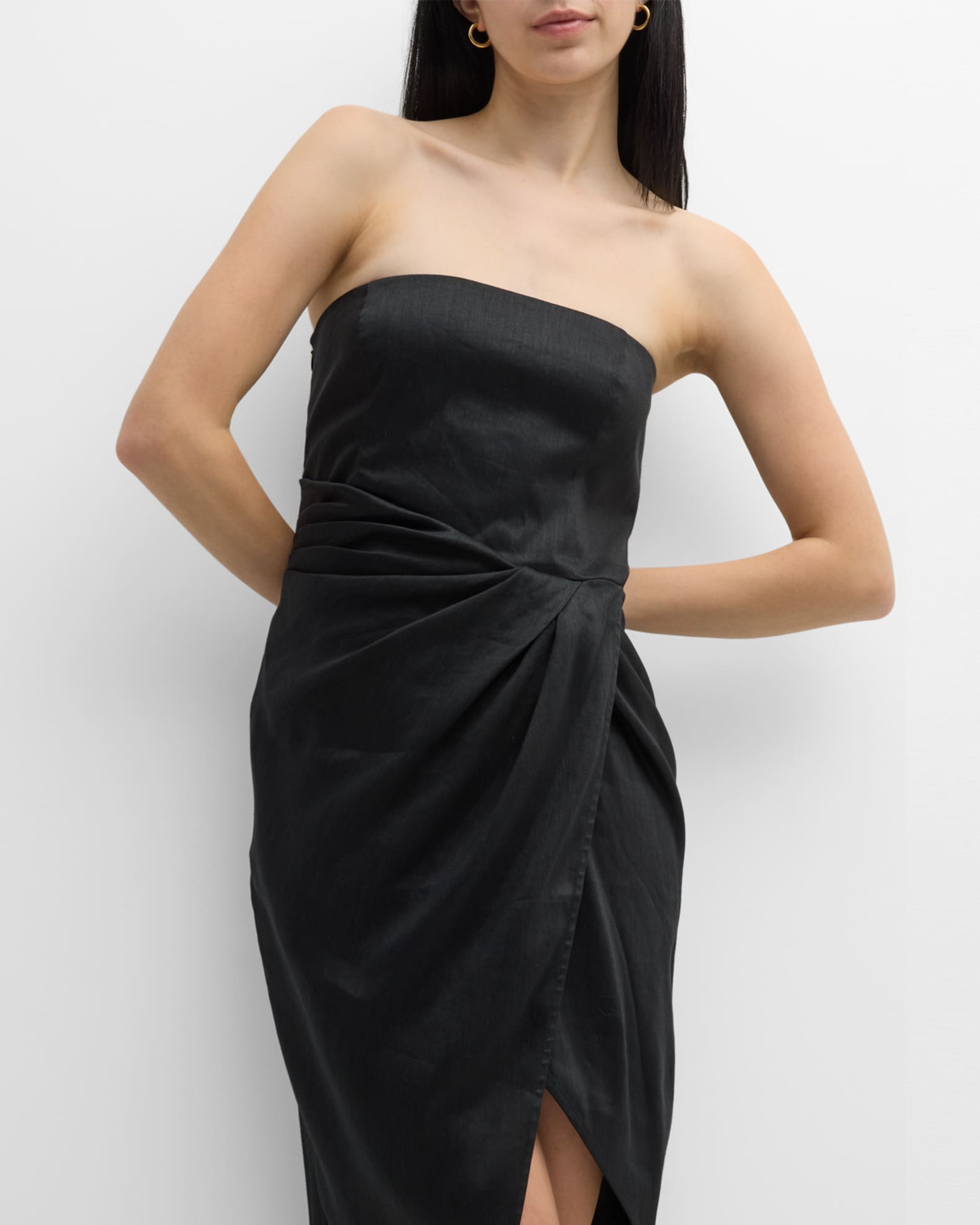Karney Linen Strapless Dress in Black By DISSH | Strapless dress, Strapless midi dress, Dress