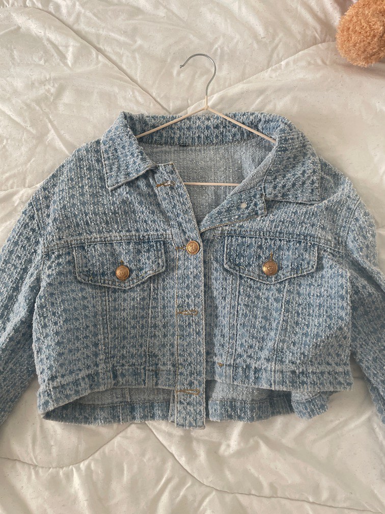 Cropped denim jacket, Women's Fashion, Coats, Jackets and Outerwear on Carousell