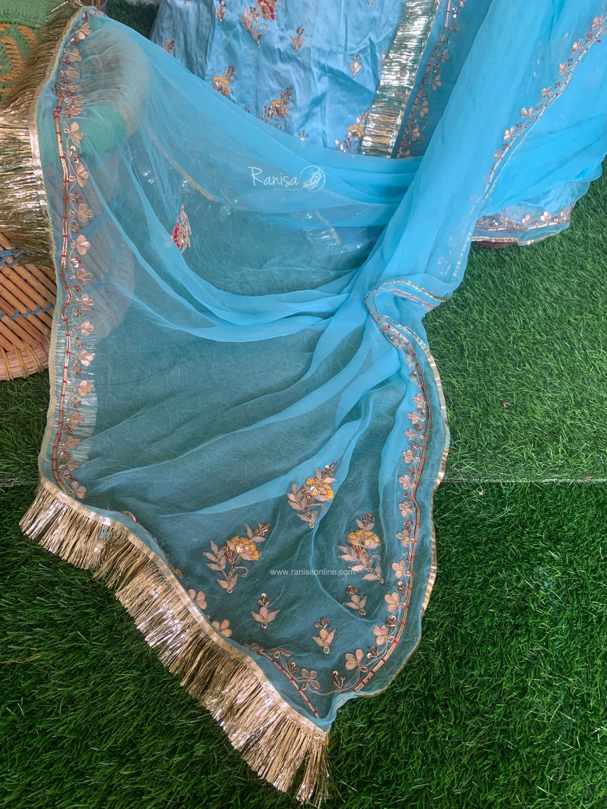 Gotta Patti Rajasthani rajputi traditional samundar lahriya poshak, Odhani: Thakurji Pure at Rs