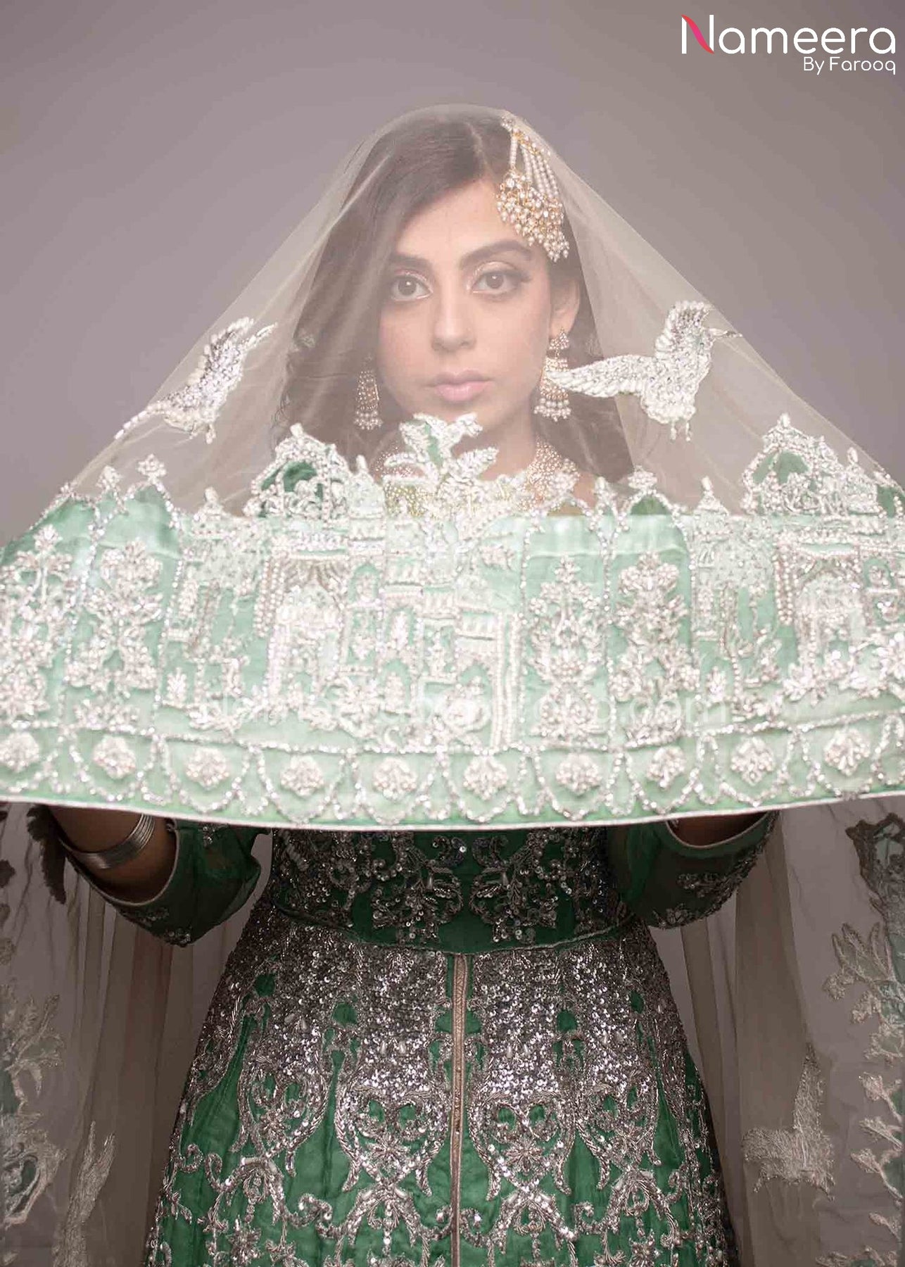 Silver Walima Pakistani Wedding Maxi Long Lehenga, 56% OFF