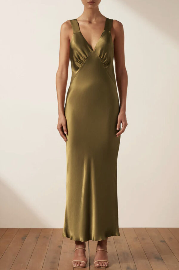 Shona Joy - Palermo Linen Plunged Short Sleeve Midi Dress | All The Dresses