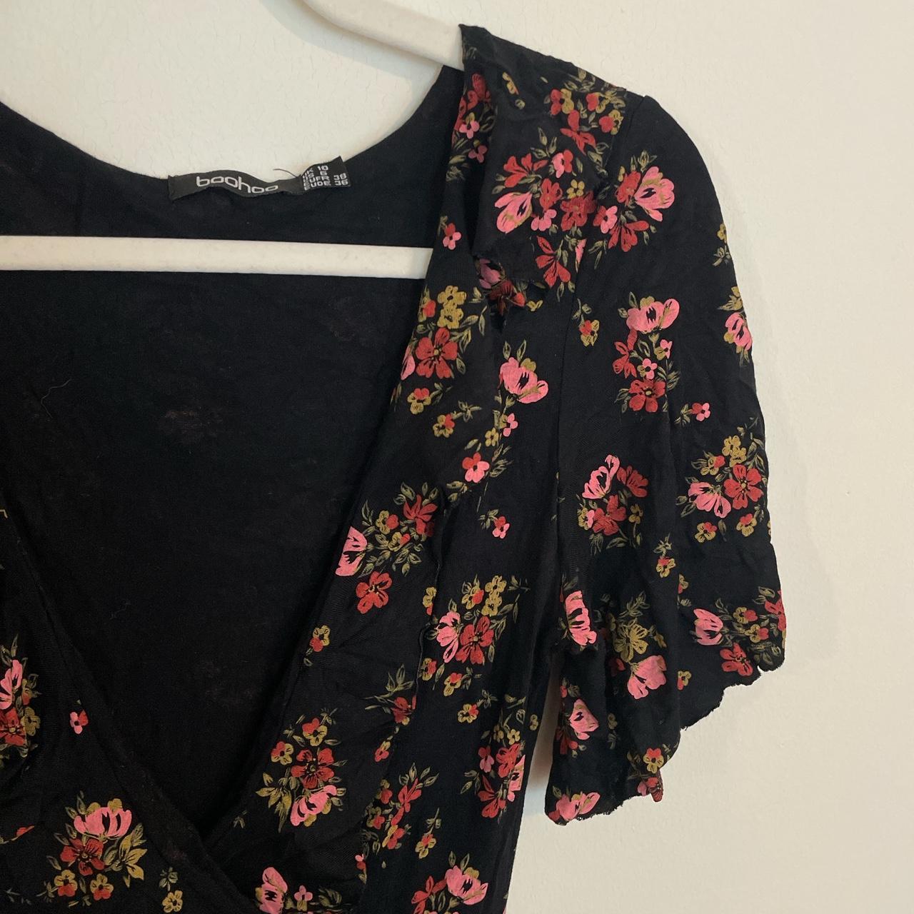 Boohoo Black Floral Ruffle Wrap Dress - Size US - Depop