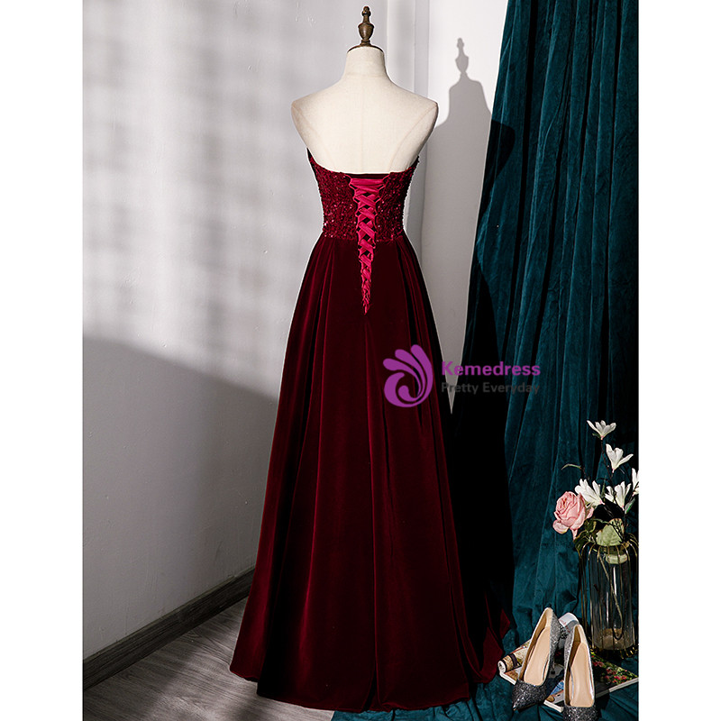 Burgundy Velvet Long Prom Dress, Burgundy Long Formal Dress â shopluu