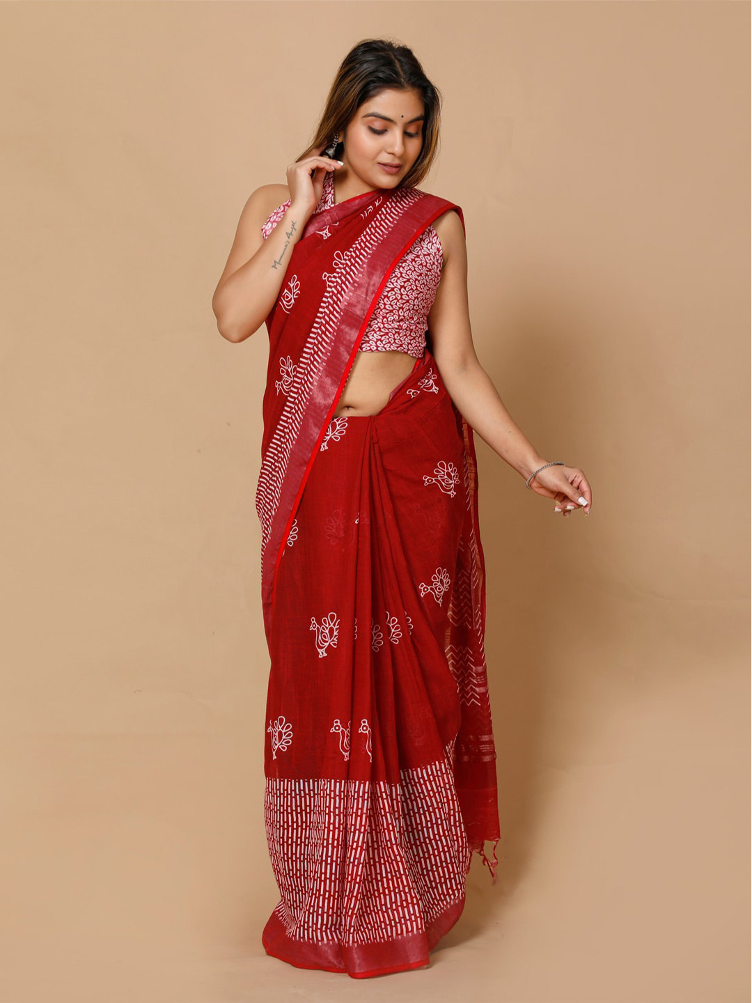 Buy BUTA BUTI Red & White Polka Dot Pure Cotton Ready To Wear Saree - Sarees for Women 22911408