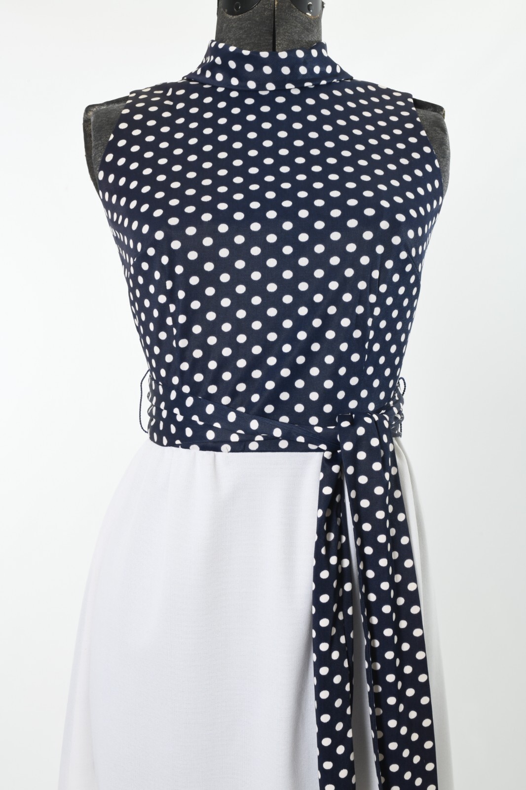 Vintage 70s Polka Dot Navy White Maxi Sleeveless Dres⦠- Gem