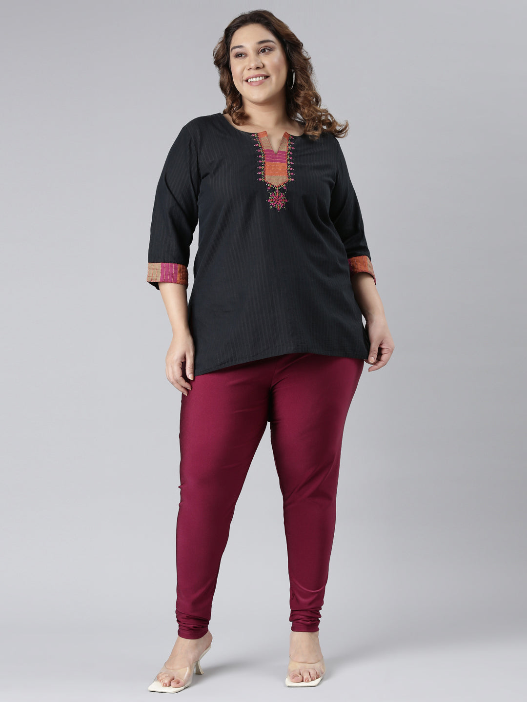 Dark Rose Nylon Stretch Shimmer Churidar â Go Colors India
