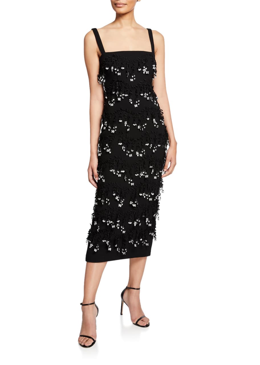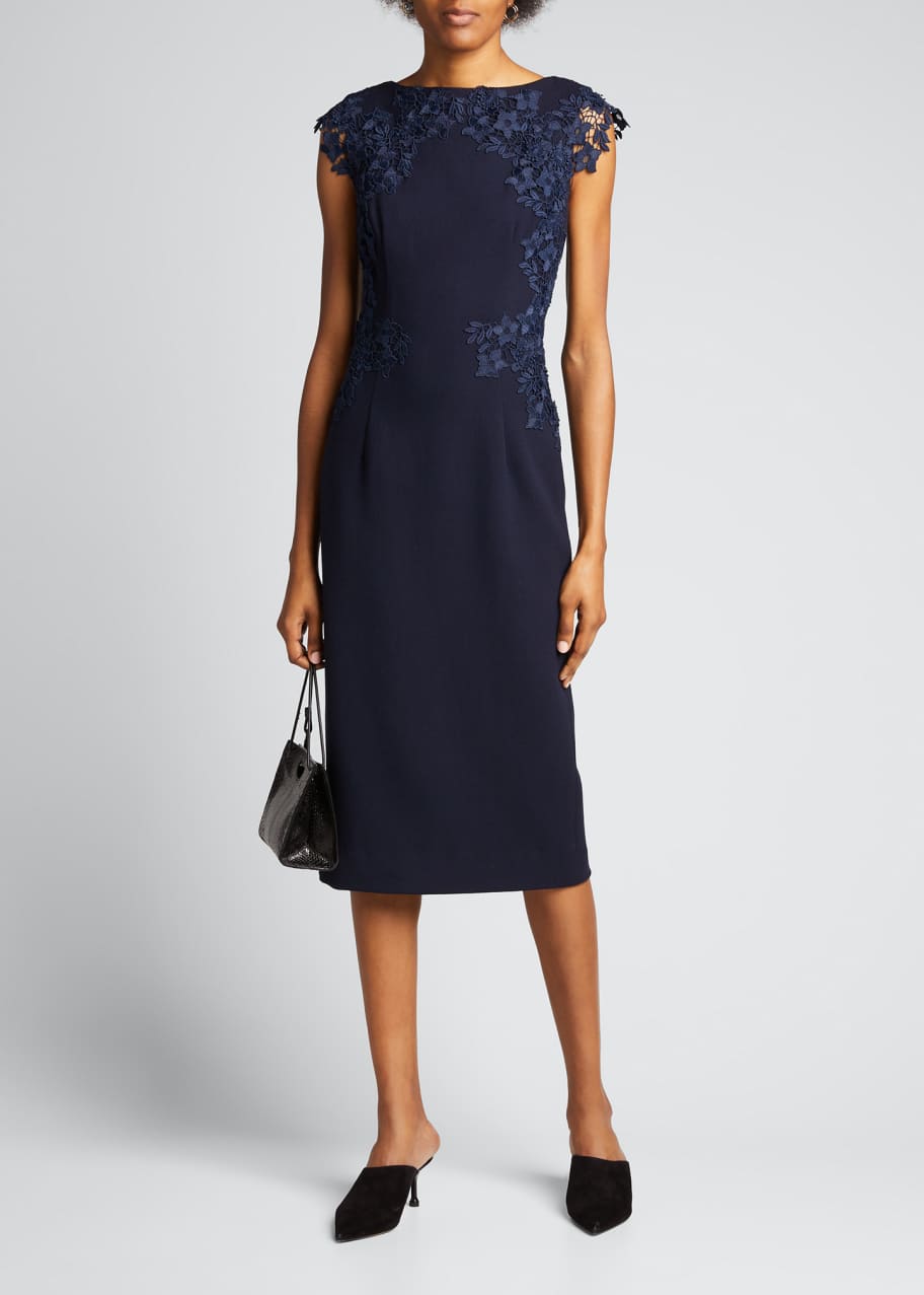 Floral Lace-Applique Midi Sheath Dress by Lela Rose