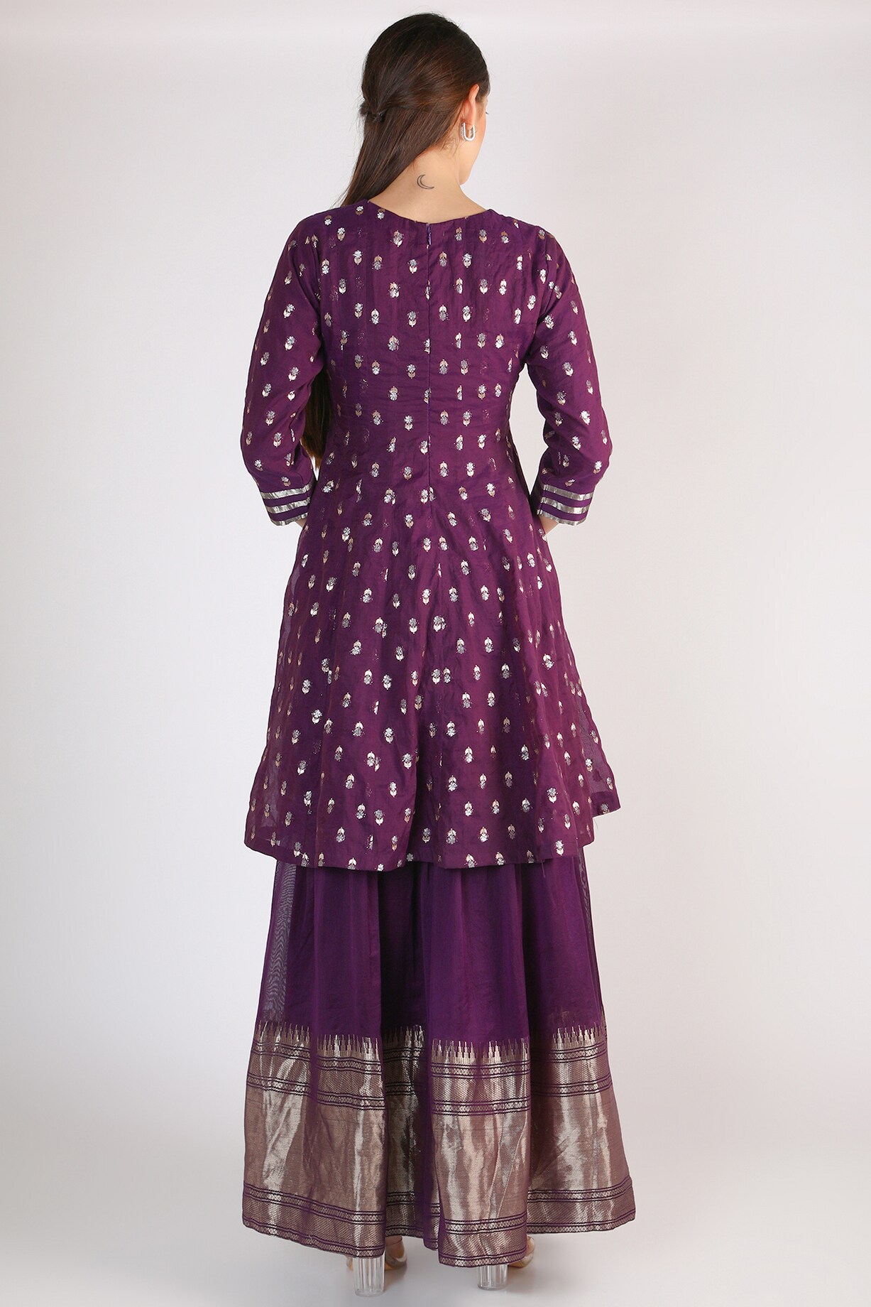 Purple Chanderi Kalidar Gharara Set With Buttis by Sobariko at Pernia's Pop Up Shop 2024