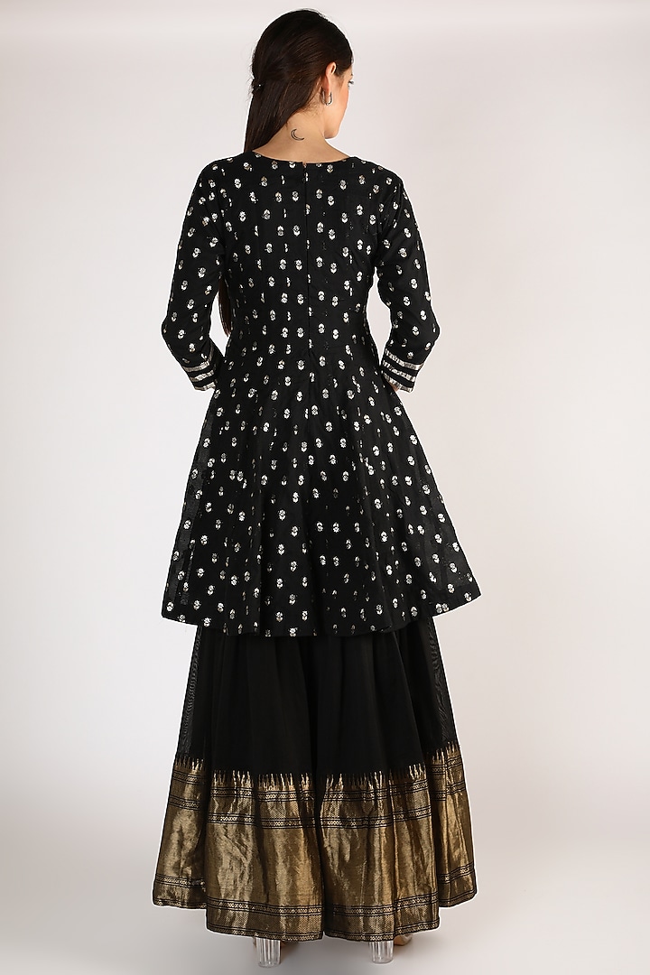 Black Chanderi Kalidar Gharara Set With Buttis by Sobariko at Pernia's Pop Up Shop 2025