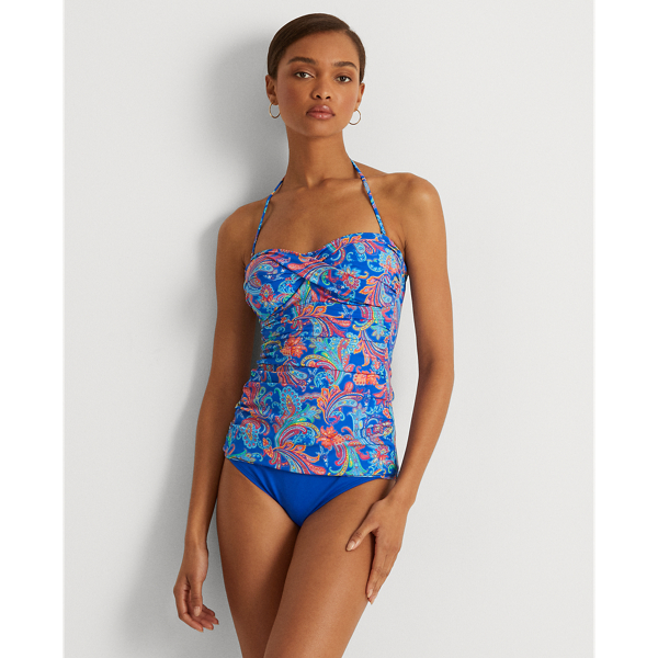 Medallion Blue Triple-Tiered Bandeau Tankini Set