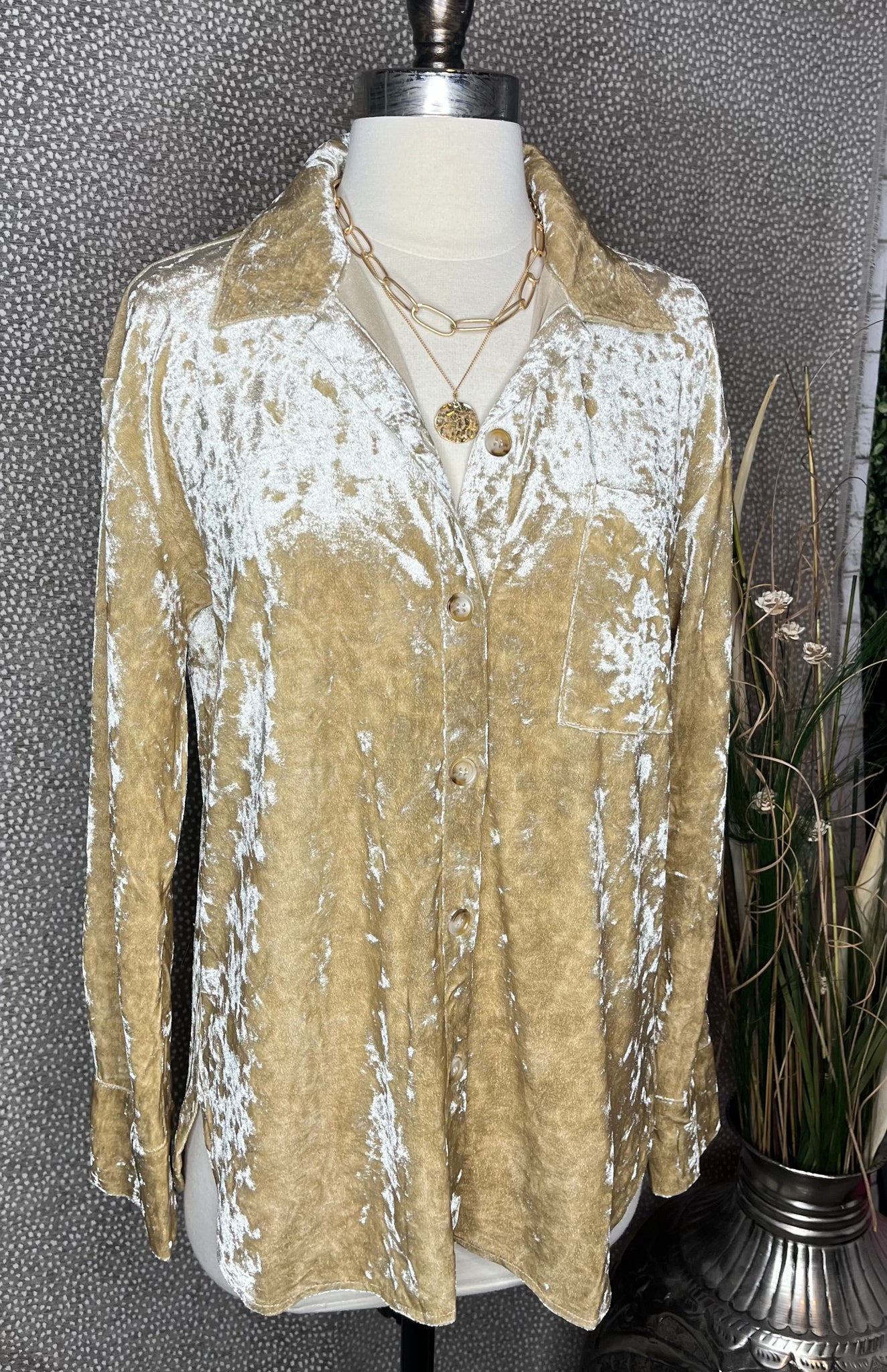 Sandra Ladies Crushed Velvet Short Sleeve Shirt Dress In Blue [HWT72 BL POL Velvet Tunics] - $33.00