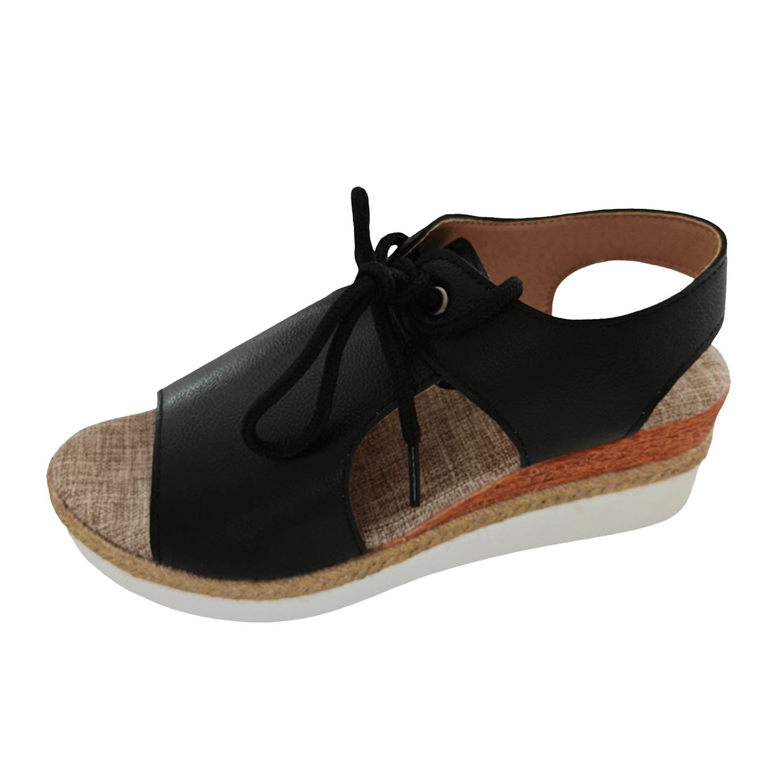 Wedge Sandals for Women, Womens Strappy Waterproof Shoes Summer Open Toe Chunky Block High Heels