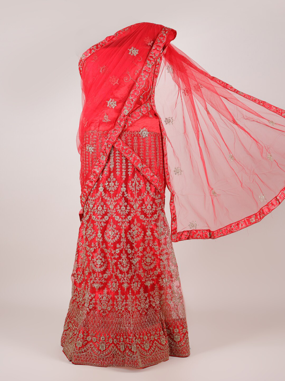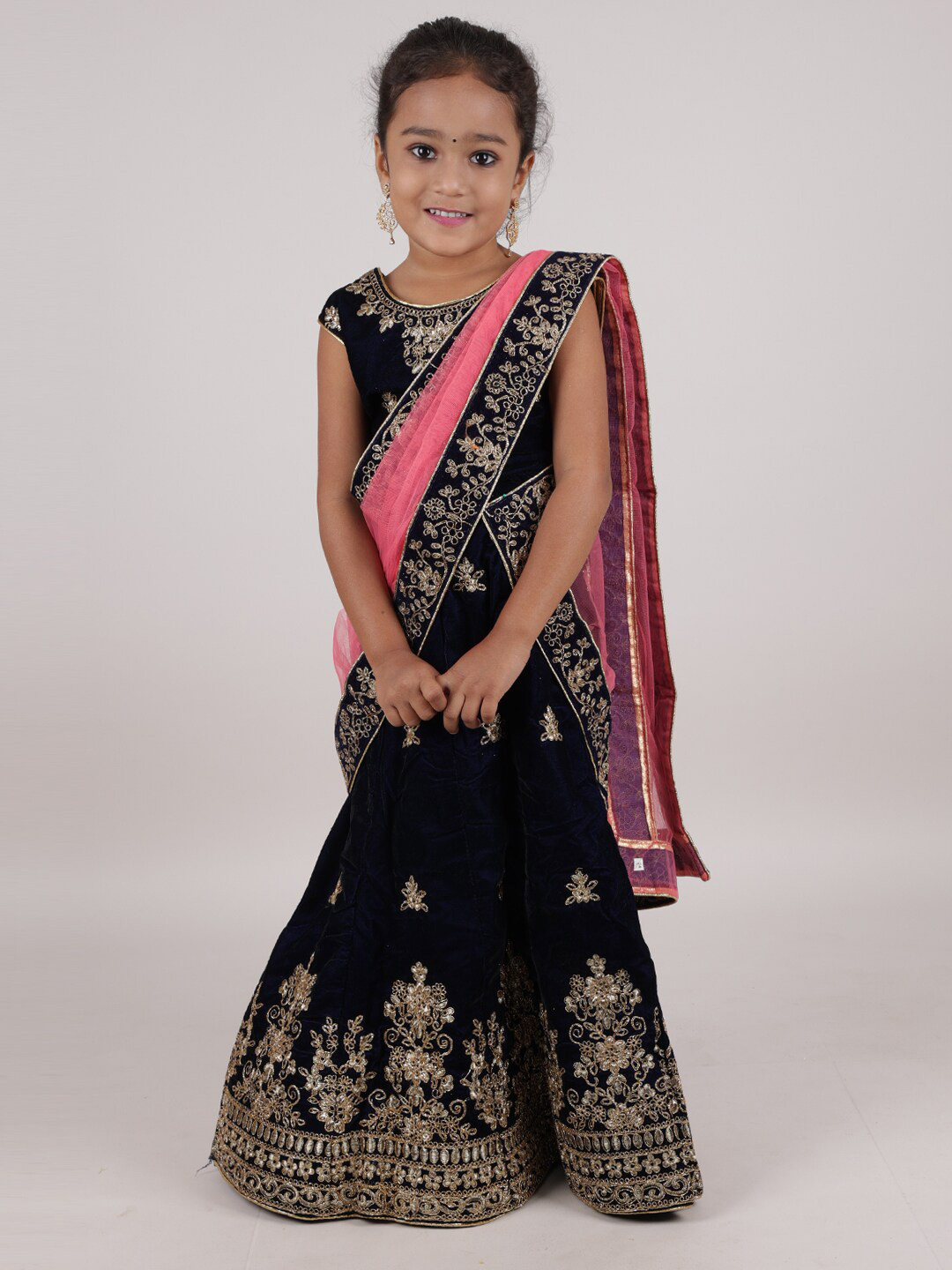Buy Pothys Magenta Embroidered Unstitched Lehenga & Blouse With Dupatta - Lehenga Choli for