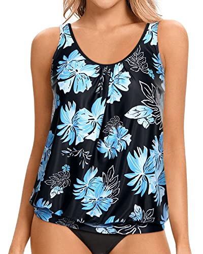 Jsaierl Womens Two Piece Tankini Bathing Suits Blouson Swim Tops Casual Print Swimwear Athletic