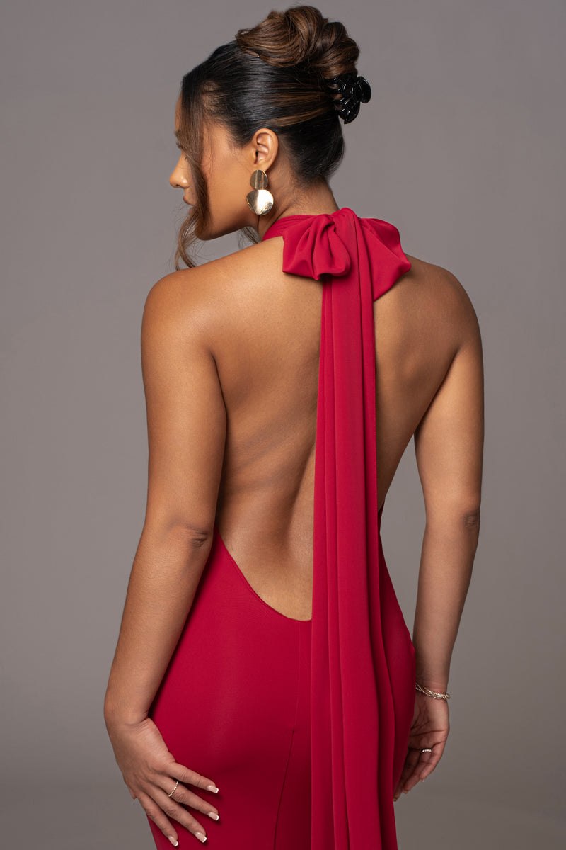 Red Evening Maxi Gown With A Sheer Open Back - Gem