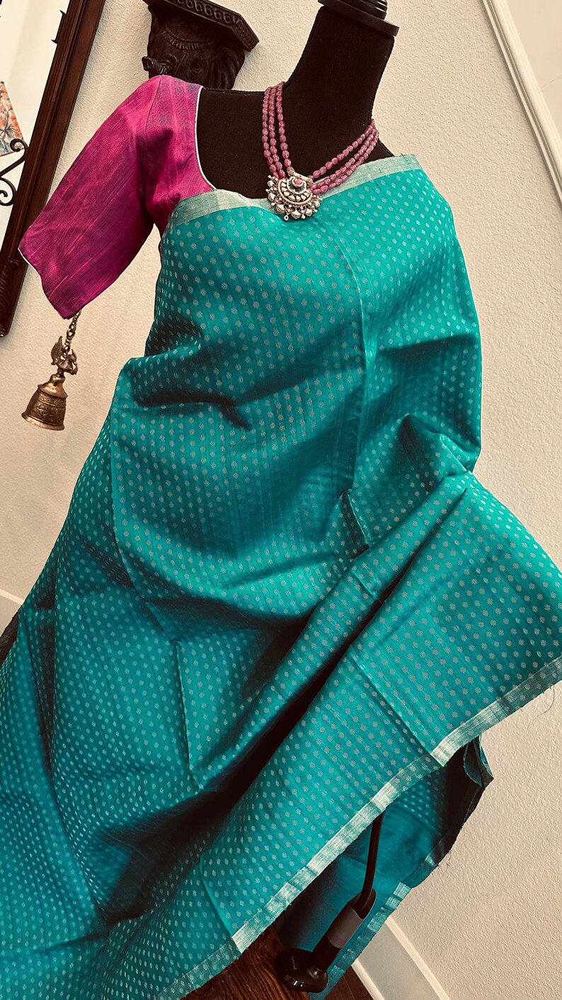 Teal Green Pure Raw Silk Saree With Silver Motifs Contrast Blouse - Etsy