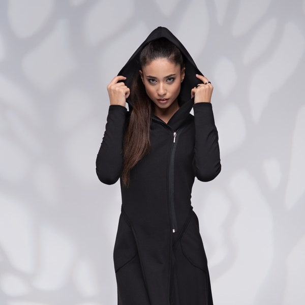 Hooded Sweatshirt Dress, Winter Maxi Dress With Cowl Hood, Long Hoodie Dress With Thumb Hole