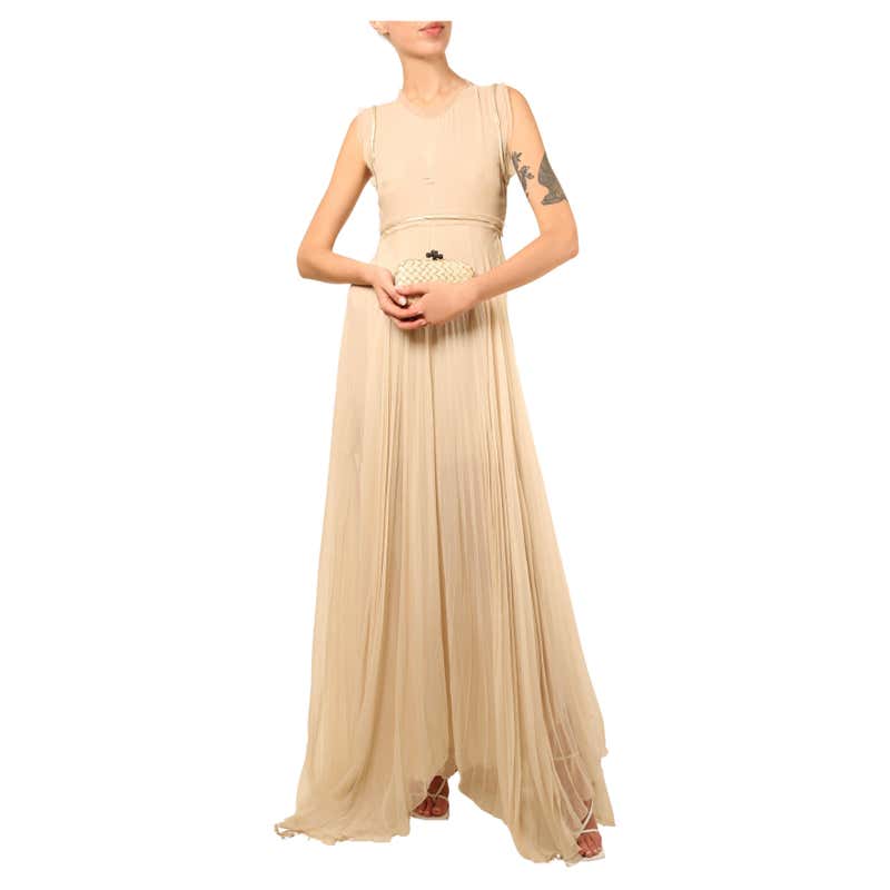 Lanvin white grecian style washed silk crystal embellished wedding dress gown For Sale at