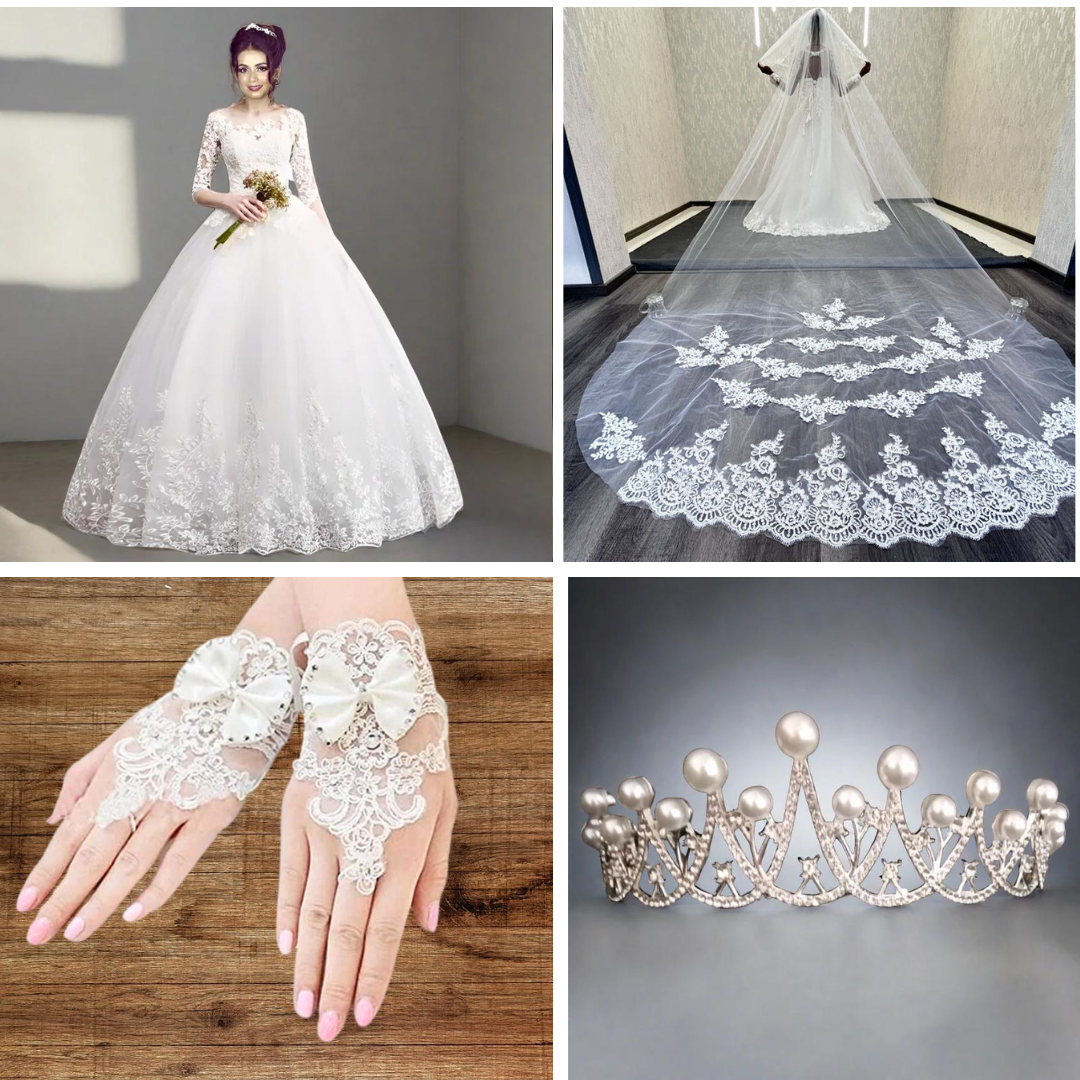 Buy white wedding gown and accessories set | Gownlink India â GownLink