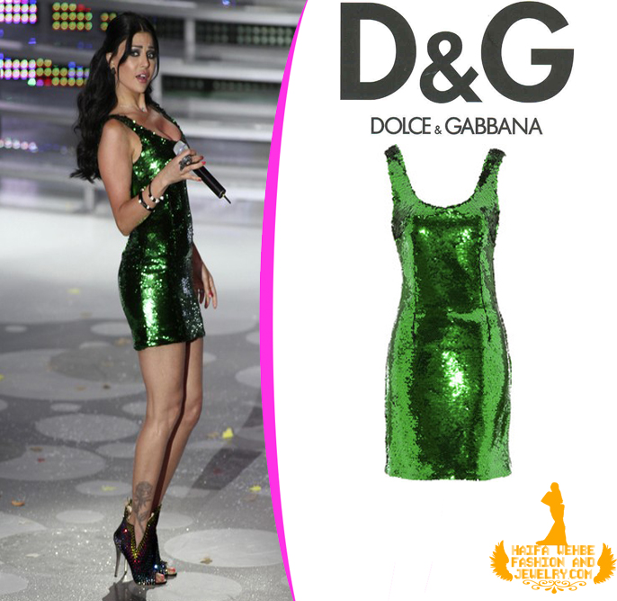 Haifa wehbe fashion and jewelry: Dolce Gabbana Tulisa green sequin dress