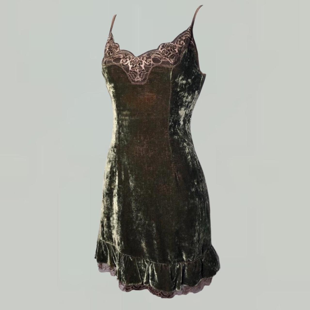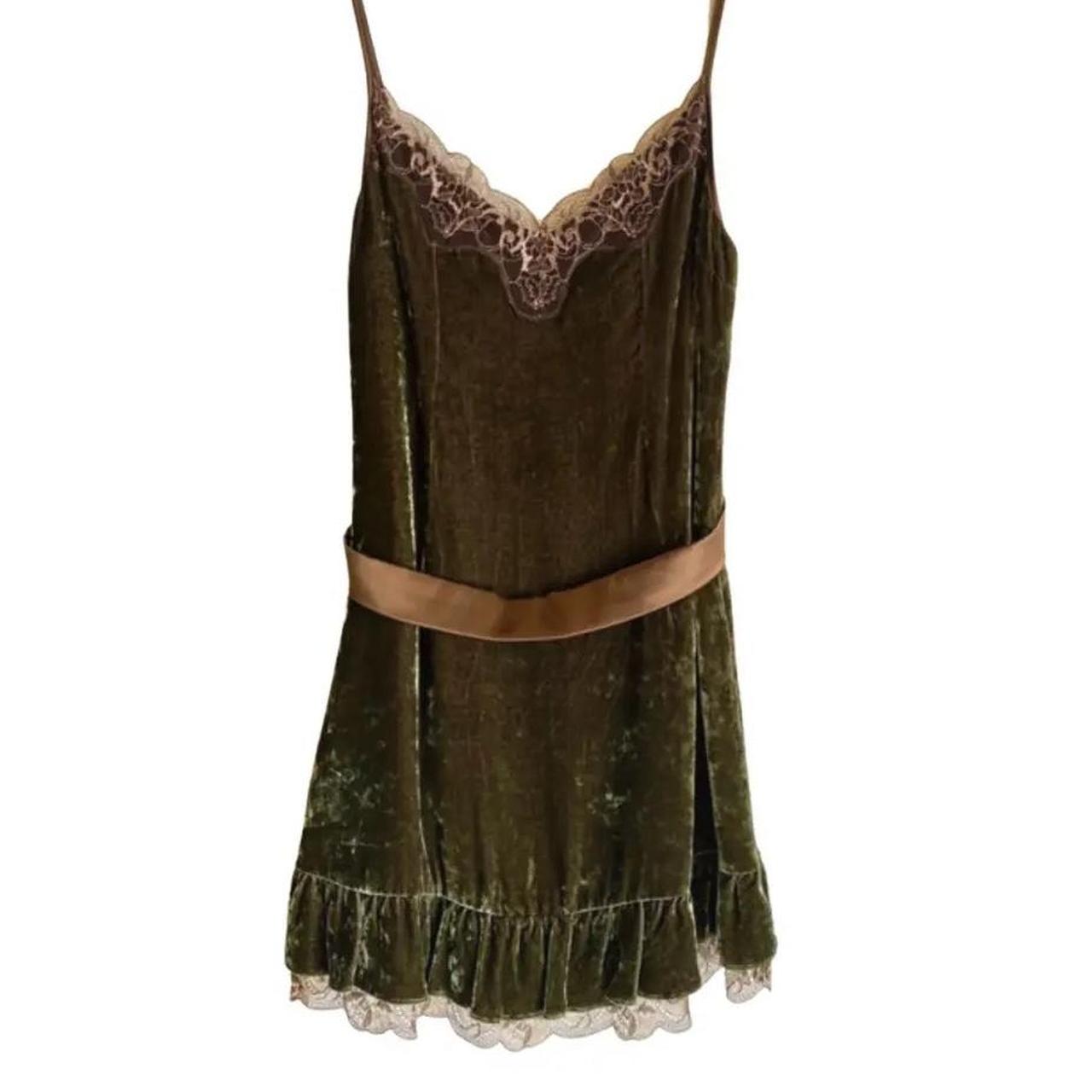 rare dolce and Gabbana green velvet dress with satin - Depop