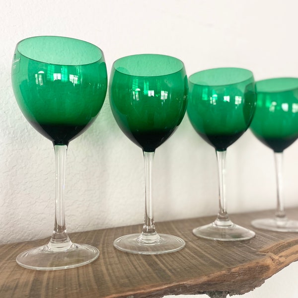 Vintage Green Wine Glasses Set of 4, circa 1950's, Tiffin Franciscan, Vintage Heavy Pressed