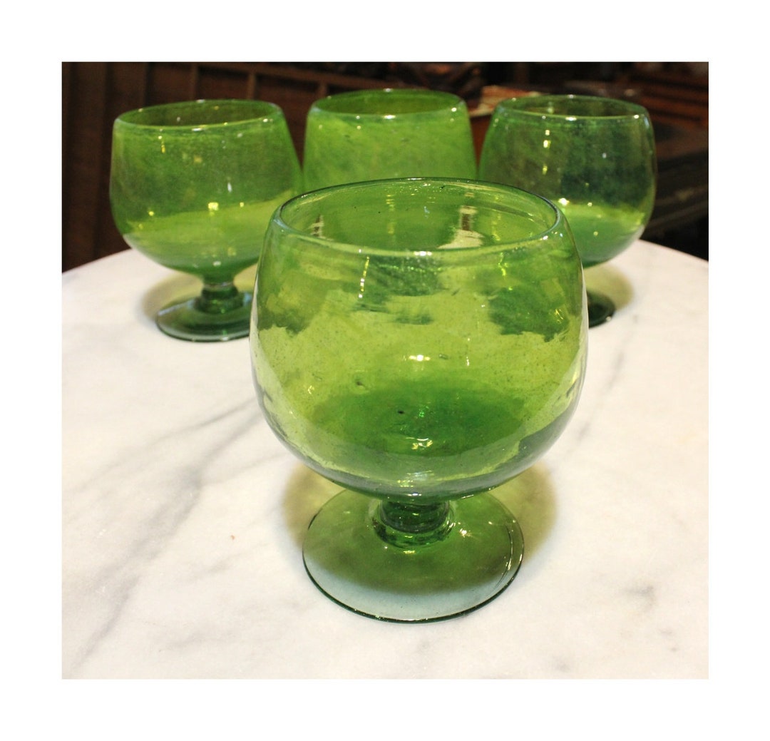 Small Green Glass Brandy Liqueur Glasses, Set of Four - Etsy