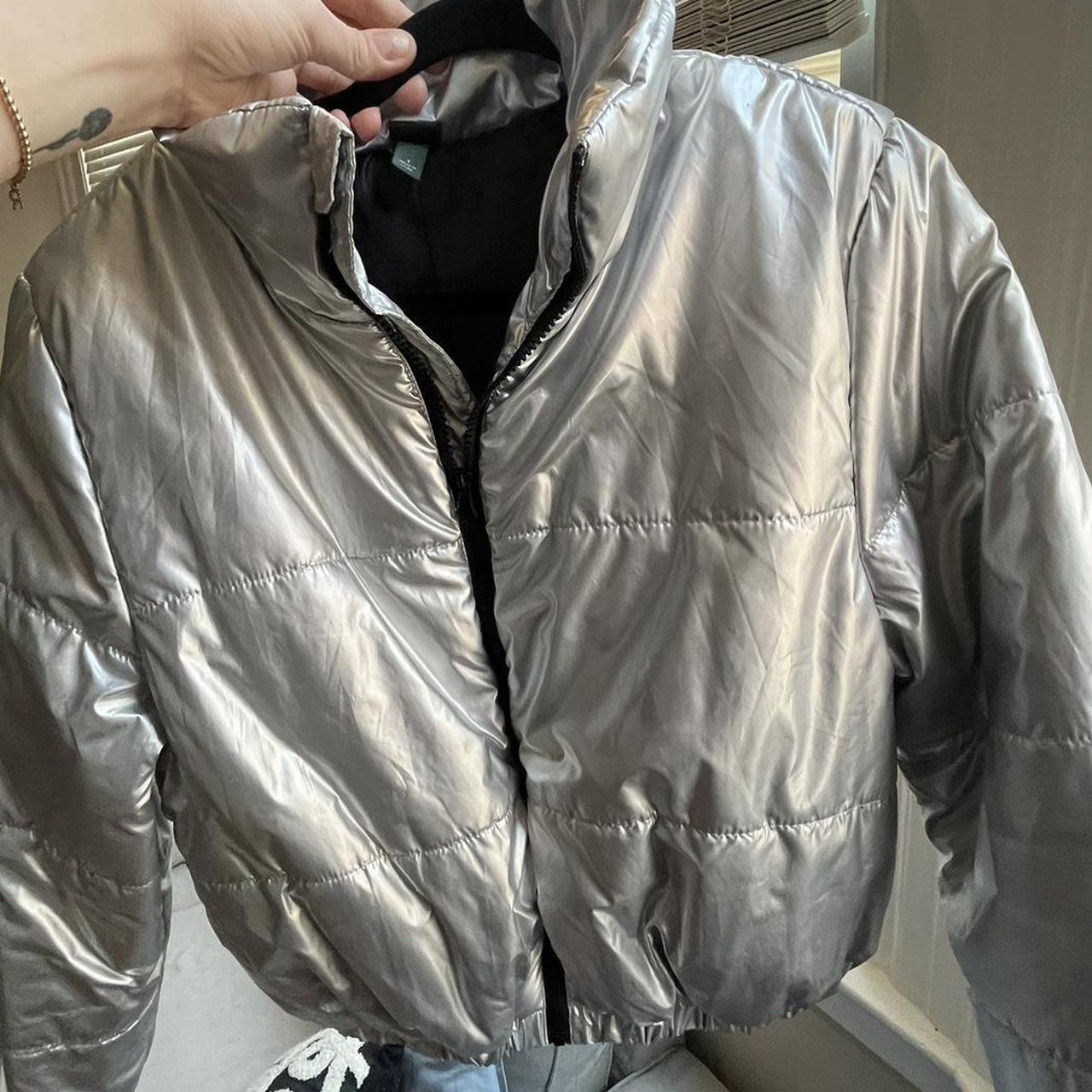 Metallic Hooded Puffer Jacket | Bright jacket, Cropped hoodie outfit, Jackets