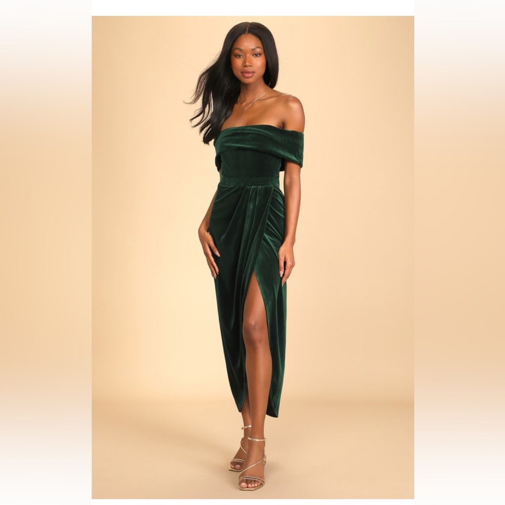 Glam Velvet Dress - Emerald Green Dress - Midi Dress - Lulus