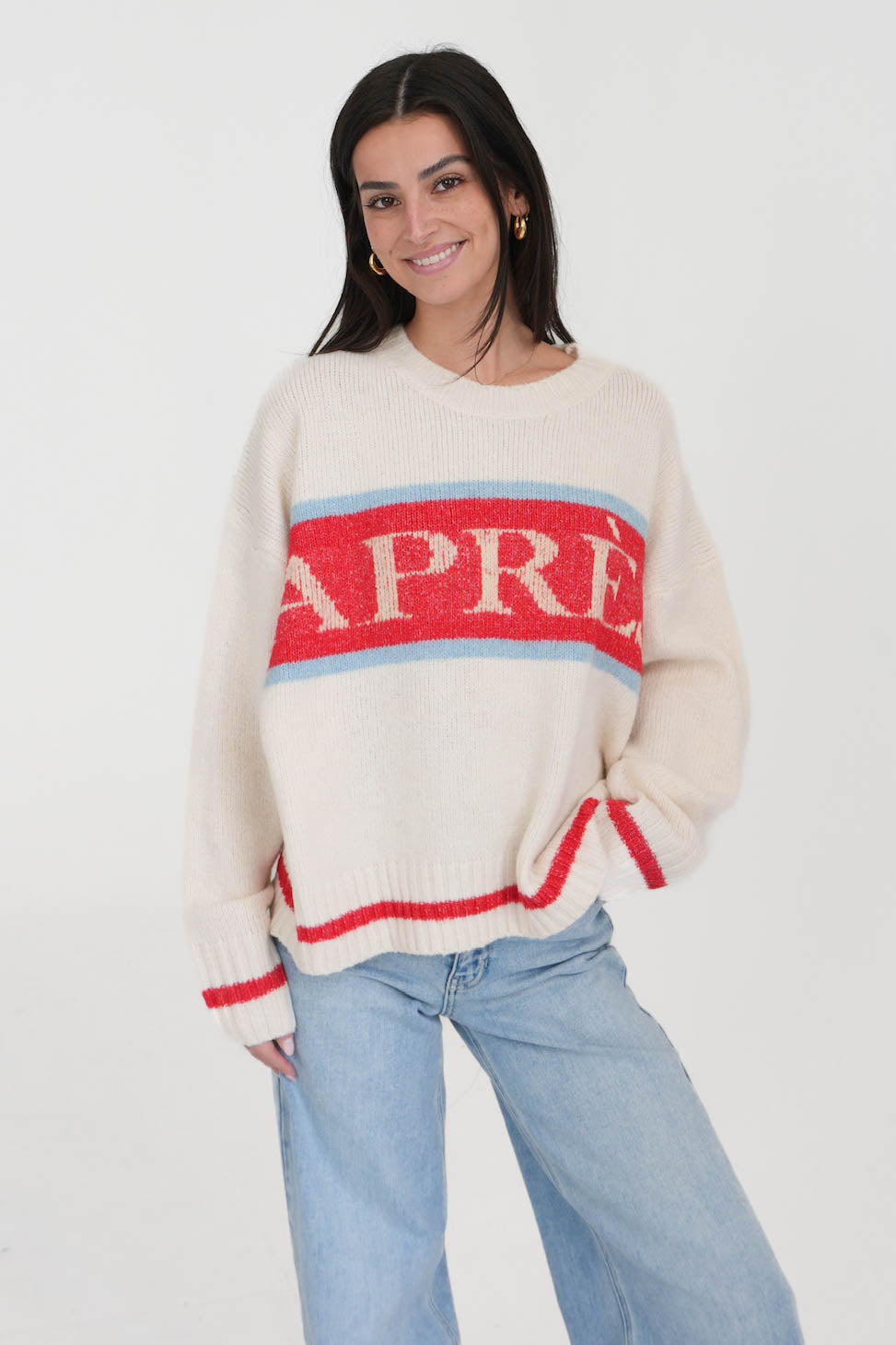 Apres Ski Letter Knit Sweater Coffee - Harper + Hudson
