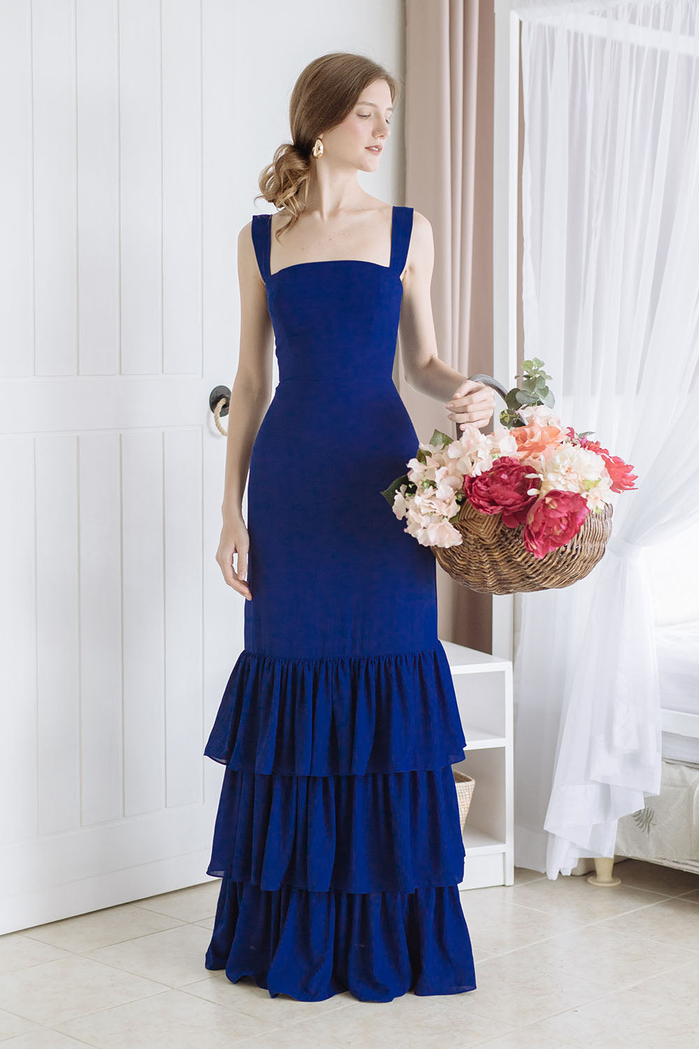 Layered Ruffle Maxi Dress Spaghetti Strap-Golden Atelier in 2024 | Long dress fashion, Ruffled