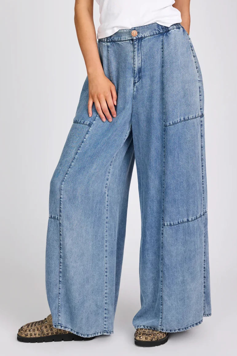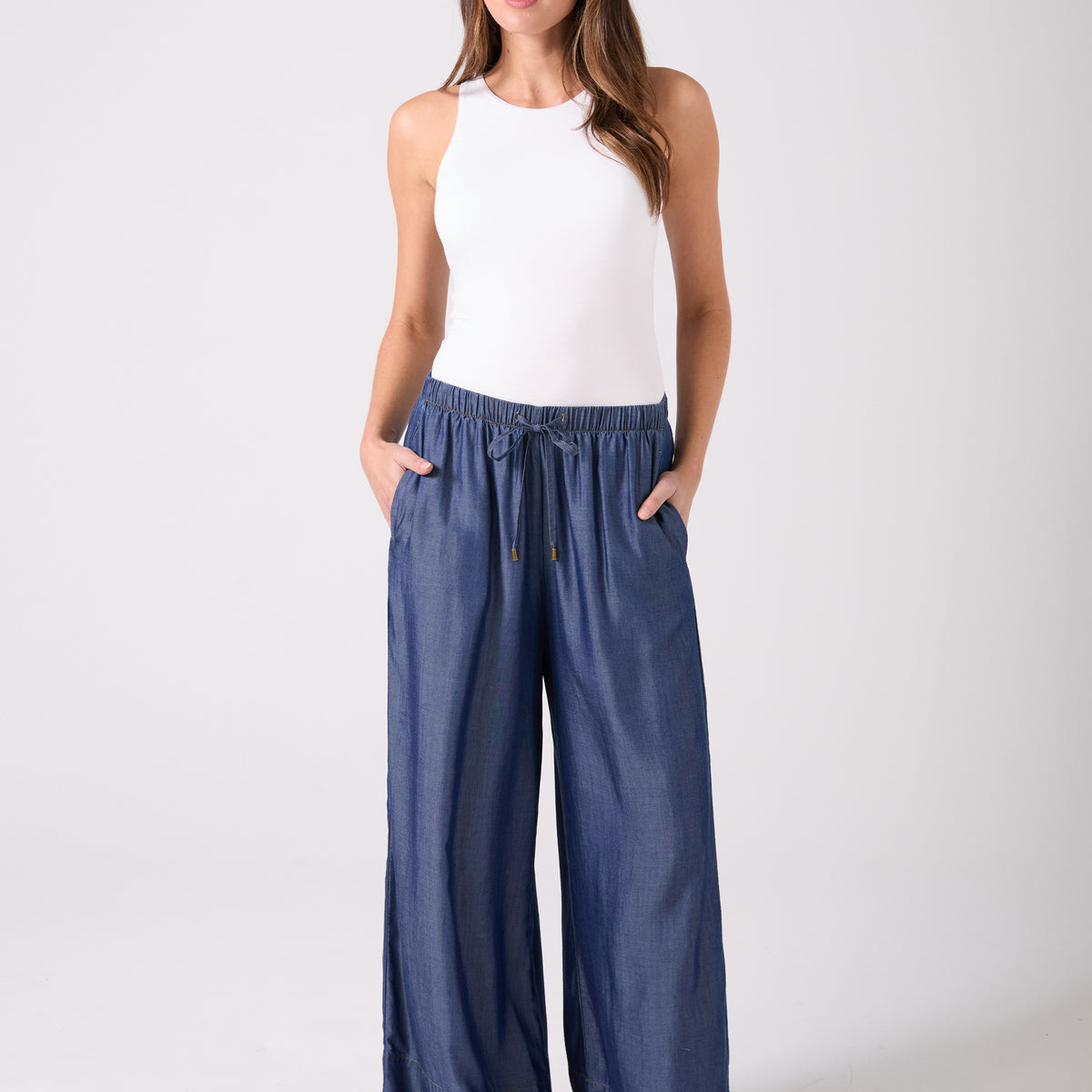 PANTS: Blue Long Tencel Denim Wide-leg Palazzo Pants - Etsy