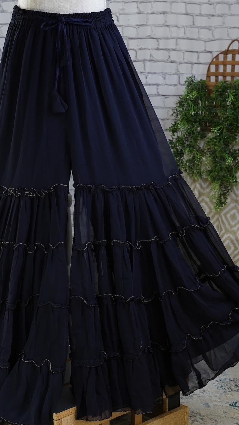 Georgette Plain Flary Tiered Palazzo Pants Indian Women - Etsy
