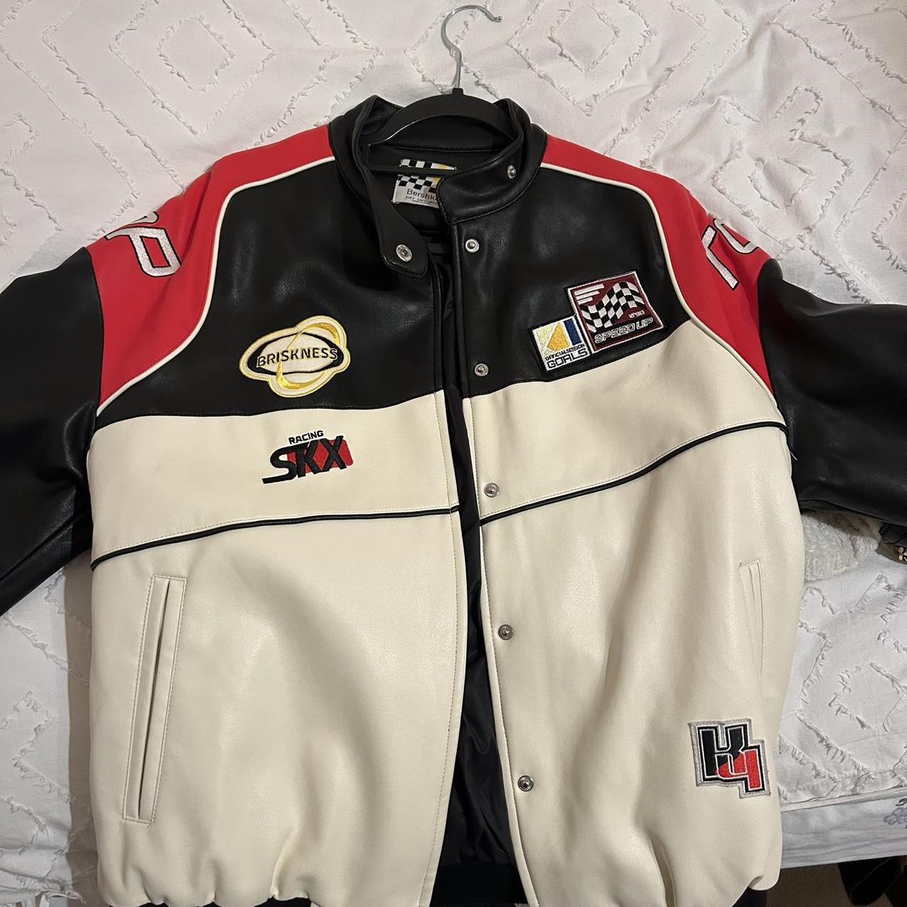 bershka leather jacket size medium - Depop