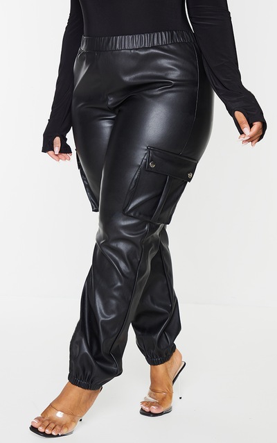 Black Faux Leather Cargo Trousers | Bottoms | PrettyLittleThing CA