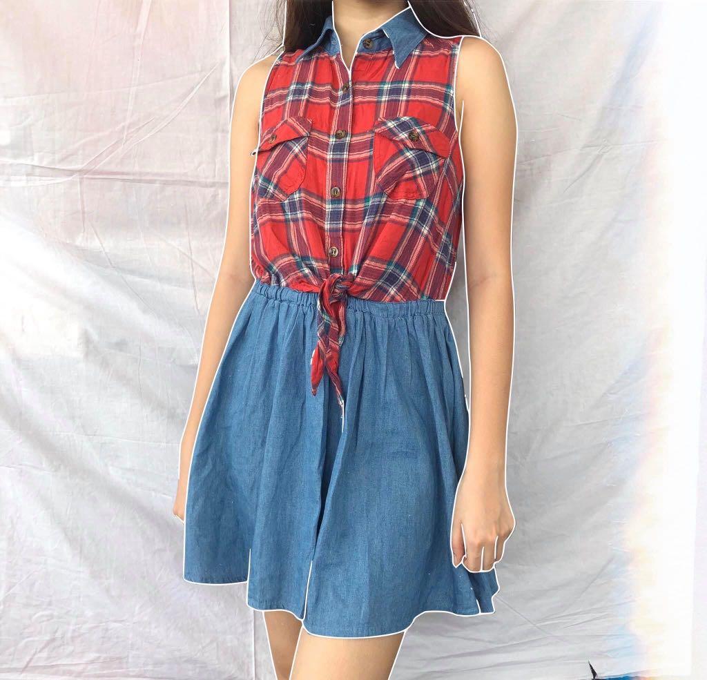 Tartan Shirt Dress (BeSugar&Spice) | Tartan shirt, Green bag outfit, Grunge dress