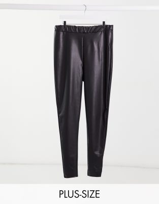 Asos Petite Leather Look Leggings With Elastic Slim Waist in Black | Lyst