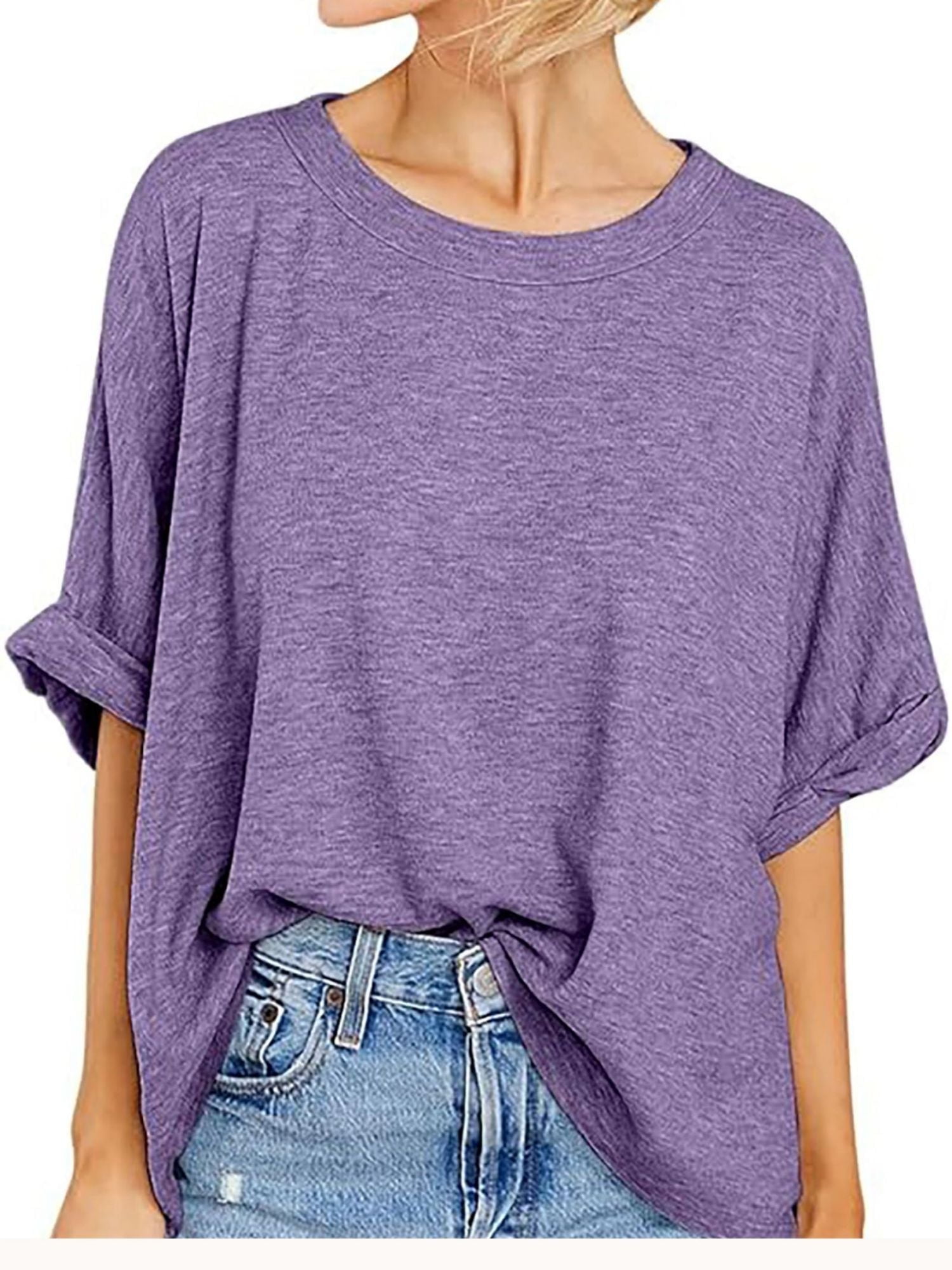 Women Oversized T-Shirt Loose Fit Workout Tops Short Sleeve Gym Basic Tee Shirt - Walmart.com