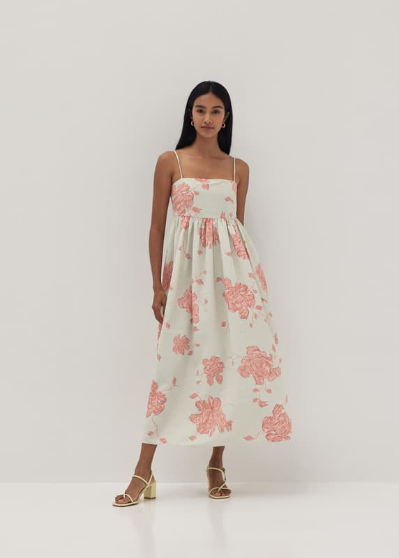 Foiled Floral Ruffle Babydoll Dress in White | LUCY IN THE SKY