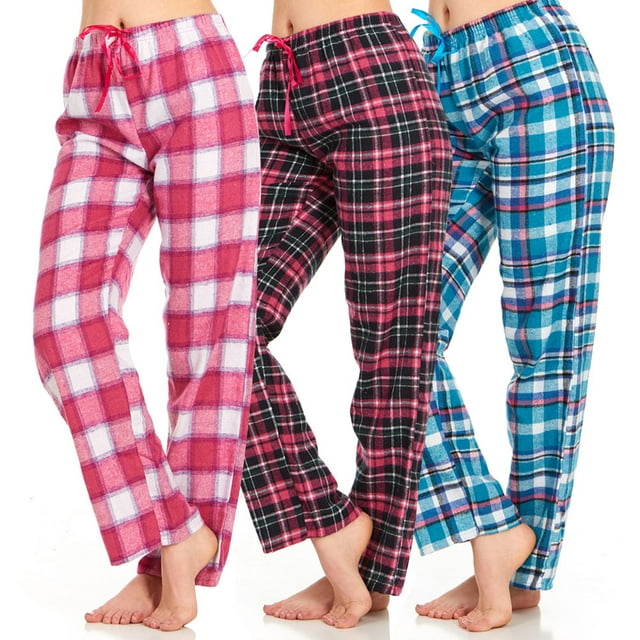 Daresay Women's Soft, Comfy, Plaid Flannel Pajama Pants, 3-Pack, 60% Cotton, 40% Polyester