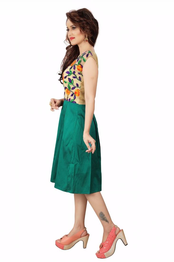 Green embroidered viscose short-kurtis - kvsfab - 3263533