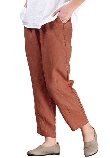 Mordenmiss Women's Linen Wide Leg Elastic Waistband Pants with Pockets | Cotton linen pants