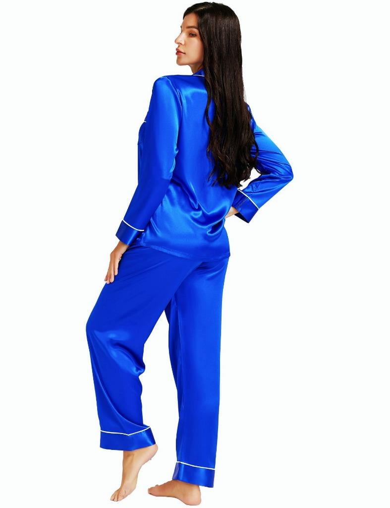 Lonxu Pajamas Set Women Silk Satin Long Sleeve Two-piece PJ Set Loungwear XS - Walmart.com