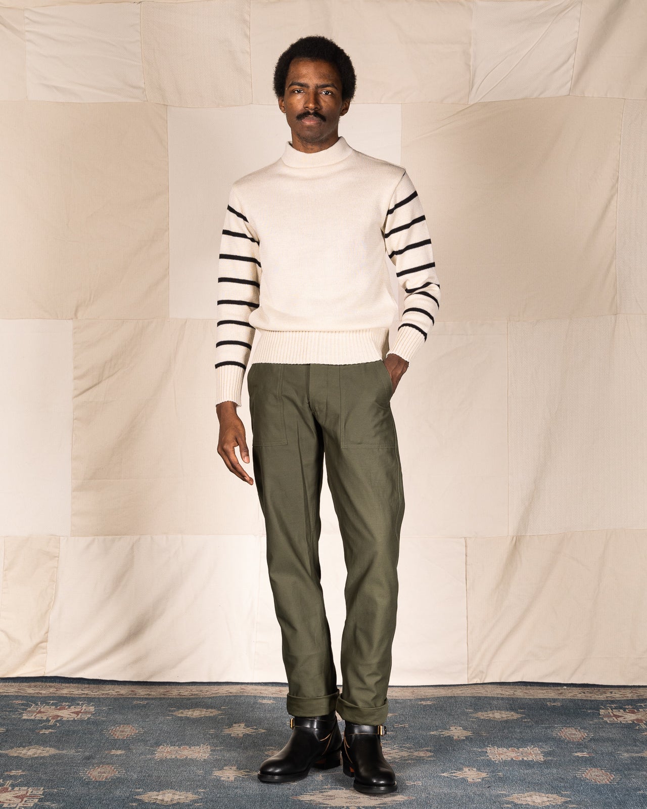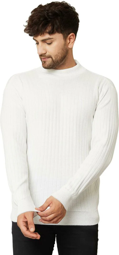 White Sweater High Neck White Cotton Mix Loose Knit Stripe - Etsy