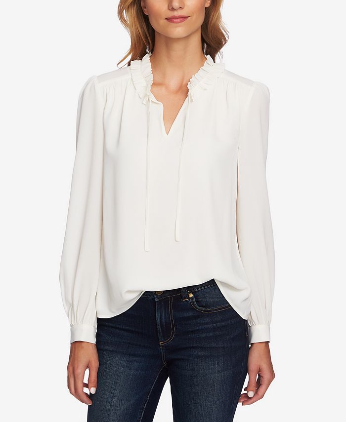 Women's CeCe Smocked Shoulder Tie Neck Blouse | Zappos.com